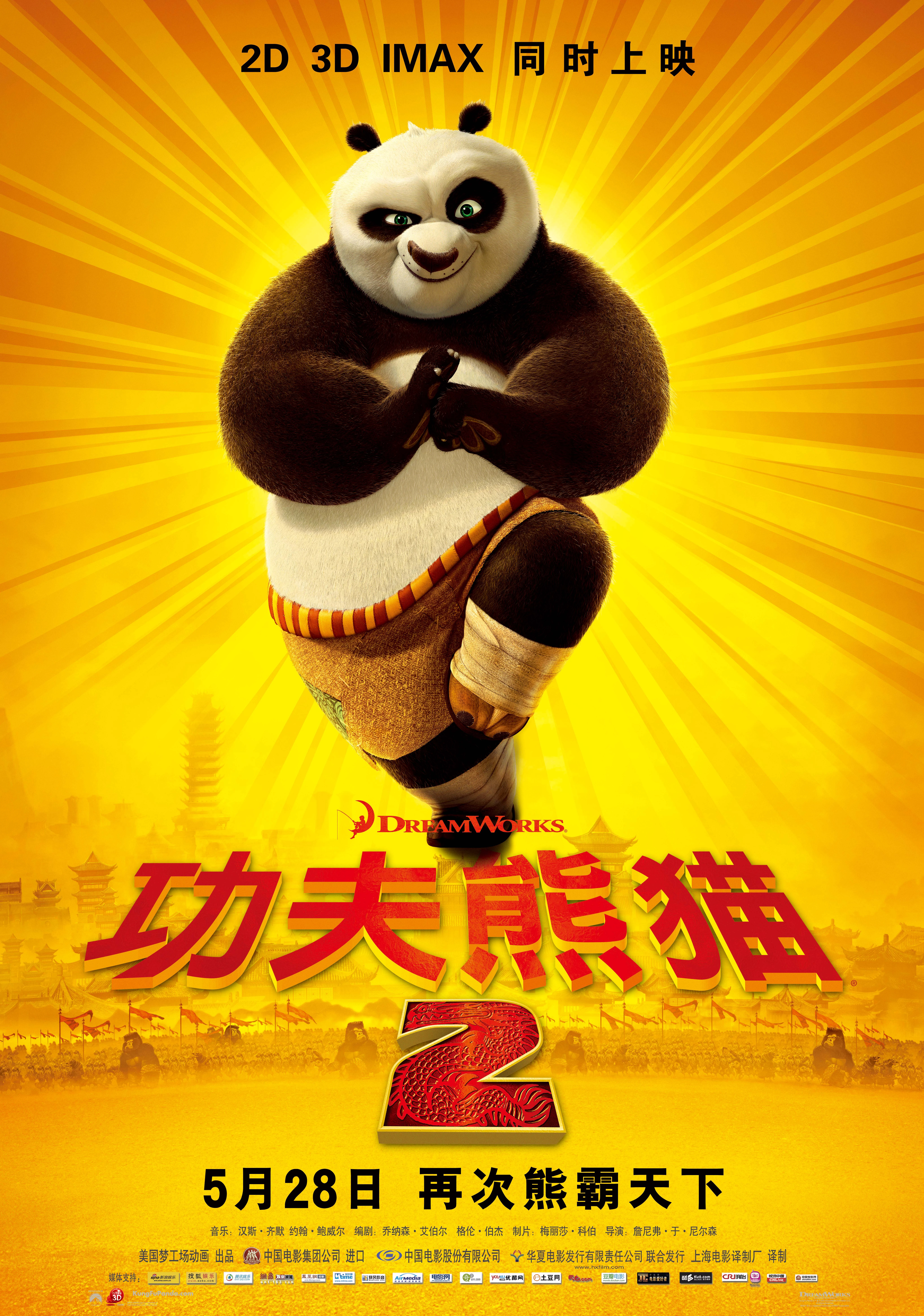 《功夫熊猫2》(Kung Fu Panda 2)是由美国梦工厂出品,派拉蒙影业发行,詹妮弗·余执导,乔纳森·阿贝尔、格伦·伯杰、伊森·瑞弗编剧,杰克·布莱克、安吉丽娜·朱莉、成龙、塞斯·罗根、加里·奥德曼等配音的3D动画电影。该动画电影是2008年动画电影《功夫熊猫》的续集。该片讲述了熊猫阿宝功成名就,成为名震四方的神龙大侠。平日里他随同师傅以及盖世五侠在和平谷修炼,生活悠哉游哉。一日,一伙恶徒闯入山谷抢夺金属材料,在与他们交手中阿宝意外产生幻觉,由此对自己的身世感到疑惑。另一方面,恶徒的魁首白孔雀沈王爷正图谋闯入王宫,称霸全中国。新的正邪大战拉开序幕,阿宝他们面临前所未有挑战的故事。该片于2011年5月26日在北美上映,于2011年5月28日在中国大陆地区上映。